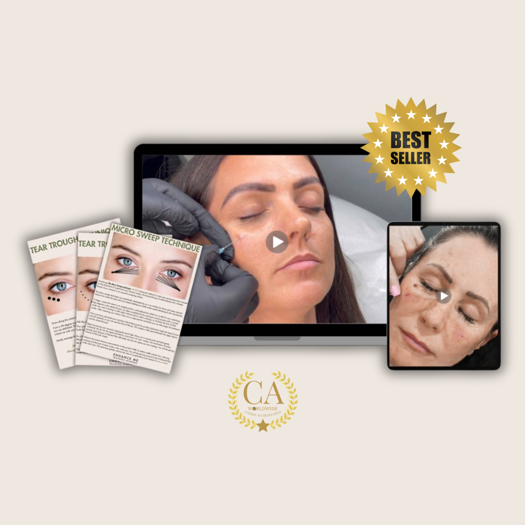 Cannula techniques, micro sweeping, micro fanning, product selection and volume guidelines are all covered in our tear trough filler courses.