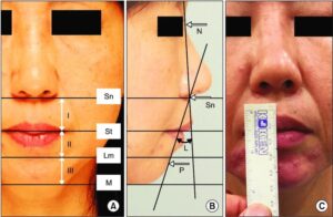 Use Ricketts’ Esthetic Plane as an assessment guide to the overall relationship between the tip of the nose, the lips and pogonion of the chin for lower third facial harmony.