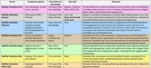 Click on the link below to access a downloadable and printable table summarising the uses of each serum.
